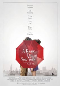 Einer seiner besten Filme der letzten Jahre ist BLUE JASMIN (2013), der auch in seiner Lieblingsstadt New York spielte. Mit A RAINY DAY IN NEW YORK hat er nach Jahren wieder ein Heimspiel und das mit einer für ihn ungewöhnlich frischen Besetzung in der Spieleraufstellung. Sonst bleibt alles beim Alten: jazzige Filmmusik, schnelle spitzfindige Dialoge, wenig Bildästhetik, eine kauzige männliche Hauptfigur und eine vertraute Story.