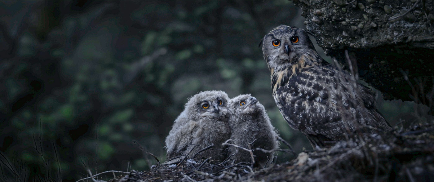 Deswegen braucht es auch diese drei Vertreter der Generationen, die ihr Wissen weitergeben. Wir lernen mit ihnen, ohne die Zwänge einer Schulstunde, lauschen ihren Geschichten bei Kerzenschein in einer einsamen Hütte. Der Jüngste darf natürlich dennoch im aktuellen Jahrzehnt mit Smartphone und Mangas von Miyazaki. Der Großvater erzählt von seiner letzten Begegnung mit dem Auerhahn in seiner Heimat und Vincent Munier schenkt seinem Vater die Beobachtung eines Luchs. Diese drei Menschen entdecken die schönsten Tiere in wunderschönen Momenten, wie der Schwarzspecht, der die Rinde eines abgestorbenen Baums entfernt oder ein Sperlingskauz, der mit seinen leuchtenden Augen so intensiv in die Kameralinse schaut, dass man froh ist, wenn auf einmal der kleine Nachwuchs sich nach vorn drängt. Den majestätischen Auftritt bekommt dann im Finale der Auerhahn, den man so nah erleben kann, dass man ehrfürchtig vergisst zu atmen, um jedes Geräusch zu vermeiden, das ihn verschrecken könnte.