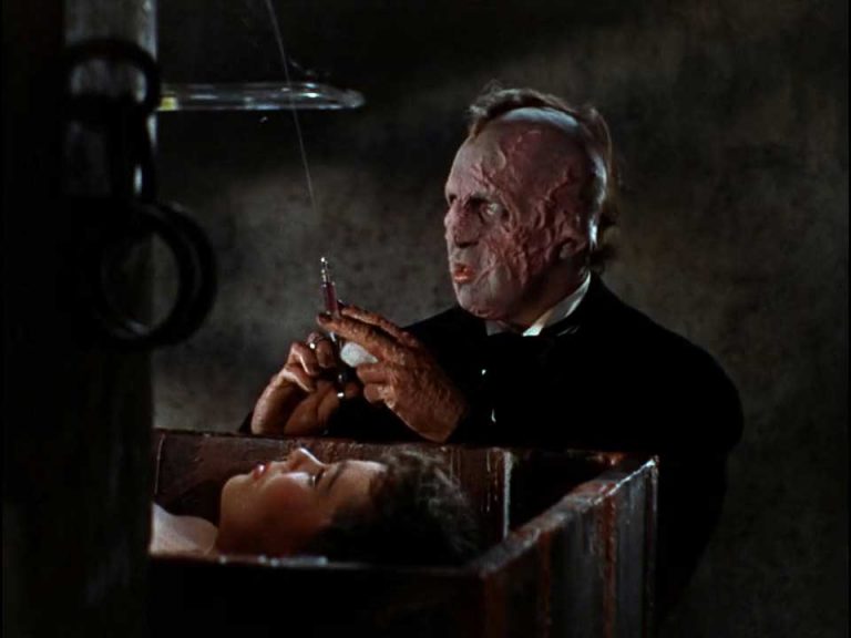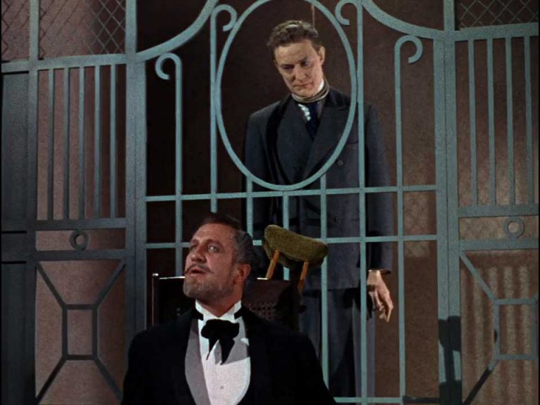Die Verteilung der Screentime ist hier harmonischer ausgefallen. Hauptdarsteller Vincent Price, Phyllis Kirk und Frank Lovejoy kommen in gleichen Anteilen vor die Kamera und nutzen gekonnt ihre Zeit, um ihr virtuoses Spiel zu entfalten. Vor allem Price profitiert davon. Er dominiert den Film mit seiner ausgefallenen und bärenstarken Performance von Anfang an. Einer der bekanntesten und vielseitigsten Schauspieler, die das Horror-Genre hervorgebracht haben, ist zweifellos Vincent Price. Seine Filmografie ist so umfangreich, da fällt es schwer, sie auf einige Highlights zu beschränken. Große Erfolge pflastern seine Karriere, wie gleich zu Beginn mit einigen Filmen von William Castle wie z.B. DAS HAUS AUF DEM GEISTERHÜGEL (HOUSE ON HAUNTED HILL, 1959). Einige Jahre später knüpft er mit seinem Landsmann Roger Corman und den zahlreichen E.A.-Poe-Verfilmungen wie beispielsweise DIE VERFLUCHTEN (HOUSE OF USHER, 1960) nahtlos daran an. Doch auch danach blieb der Erfolg nicht aus und Price bestach durch geniale wie auch schreckliche Rollen z. B. in DER HEXENJÄGER (WITCHFINDER GENERAL, 1968), DAS SCHRECKENSKABINETT DES DR. PHIBES (THE ABOMINABLE DR. PHIBES, 1971) oder DAS HAUS DER LANGEN SCHATTEN (HOUSE OF THE LONG SHADOWS, 1983).