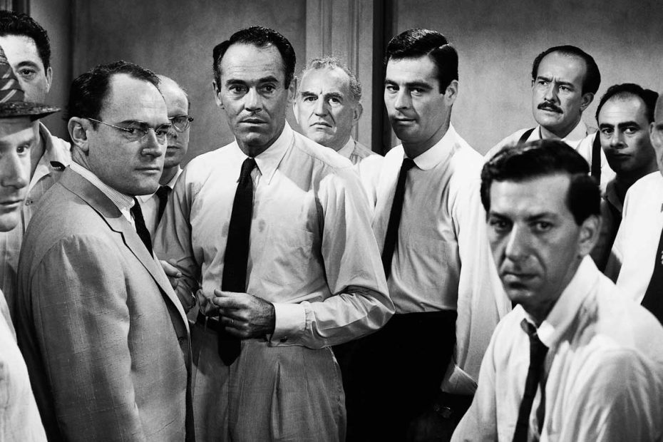 Offenkundig sei es, also dass der junge Mann schuldig ist, daran bestehe keinerlei Zweifel, raunt einer der zwölf Männer früh im Geschworenenzimmer. Ein anderer pflichtet bei, ein weiterer stimmt zu. So geht das einige Momente, bis erstmals formell eine Abstimmung erfolgt. 11 zu 1 für schuldig, „einer tanzt immer aus der Reihe“, wie der erste Lautstarke erneut nicht lassen kann. Es ist wichtig zu beobachten, wie die Männer bereits vor der Abstimmung inszeniert werden: bei gewöhnlichem Smalltalk, da spielt ein Baseballmatch eine große Rolle, zu dem Nr. 7 nach dem Termin noch hinmöchte, oder die Werbeagentur, bei der Nr. 12 arbeitet. Nach dem alltäglichen Durcheinander platzieren sich die zwölf Geschworenen dann allmählich in der Reihenfolge ihrer Nummern, reden sich fortan nur auf diese Weise an. Jede Stimme zählt, aber das Urteil, egal wie es auch ausfällt, muss einstimmig sein.