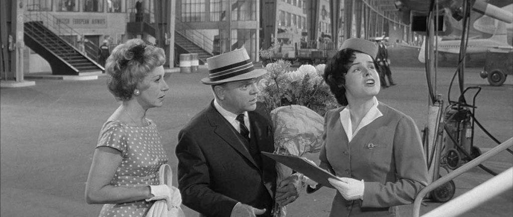 All diese politischen und gesellschaftskritischen Witze werden von Wilder und seinem Hauptdarsteller James Cagney in hoher Frequenz abgespult. Dazu ertönt immer wieder „Sabre Dance“ von Aram Khachaturyan, bei dem auch akustisch jede Menge irrer Seiltanz und Jonglierkunst vollführt wird. Wenn Filmstudenten gleich im ersten Semester lernen, dass ruhige Szenen ohne Dialog mindestens genauso wichtig sind wie die mit Gesprächen, lässt EINS, ZWEI, DREI sich nicht beirren und gibt Vollgas. Man ertappt sich, wie man Minuten später noch Pointen versteht, wie zum Beispiel Tochter Scarlett, die wie Scarlett O’Hara aus VOM WINDE VERWEHT (1939) auch aus Atlanta, Georgia kommt und von McNamaras Frau Phyllis (Arlene Francis) auf ihr Verschwinden als „Vom Winde verweht“ kommentiert wird. Auch die deutsche Synchronisation ist wortgewandt. Werner Lieven als deutscher James Cagney quasselt sich die Zunge fusselig und schreit aus vollen Rohren. Wo sonst immer bei den deutschen Übersetzungen der Wortwitz verloren geht, wenn die Englischsprachigen auf einmal versuchen Deutsch zu reden, gelingt es hier mit viel falscher Konjunktion und strengem Befehlston. Dass die ostdeutschen Polizisten auf einmal einen sächsischen Dialekt haben, ist eine sinnlose Parodie, der man heute leider immer noch nicht überdrüssig geworden ist.