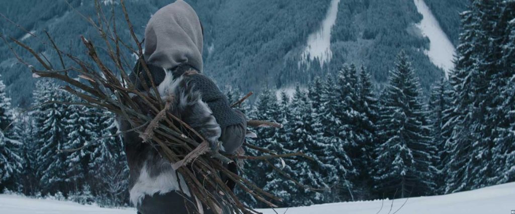 HAGAZUSSA – DER HEXENFLUCH (2017) ist ein seltenes Beispiel von atmosphärisch und handwerklich überzeugendem (Genre-)Kino aus dem deutschsprachigen Raum. Das Spielfilmdebüt des österreichischen Regisseurs Lukas Feigelfeld erzählt vor dem Hintergrund einer früheren, ländlichen Zivilisation von einer jungen Frau, die von ihrer Mutter den Hexenfluch geerbt hat und sprichwörtlich in ihre Fußstapfen tritt – und nach dem kläglichen Sterben der Mutter fortan selbst als Andersartige von den übrigen Anwohnern beäugt und auch gefürchtet wird. Wir schreiben das 15. Jahrhundert, die Neuzeit ist noch nicht ganz angebrochen. Neben der durchdringenden Atmosphäre von HAGAZUSSA, komplett ohne künstliches Licht und an Originalschauplätzen in der (Vor-)Alpenregion um das Salzkammergut gedreht, überzeugt besonders die mythische Kraft des Films, der sich zu Beginn auf die besondere Zeit der Rauhnächte besinnt und deren Bedeutung anhand von Symbolen, Figuren und Ritualen rezitiert. Dies wird in mehrerlei Hinsicht deutlich. Atmosphärisch etwa, wenn die alten Schriftzüge des Vorspanns vom eisigen Weiß der Landschaft verschlungen werden und entsättigt-graue Weitwinkelaufnahmen gebirgiger Nadelwälder eine merklich düstere Stimmung verbreiten. Es sind Bilder, die uns Zuschauenden ohne Umschweife in die dunkle Seele des Films geleiten und eine bedrückende Schwere vermitteln; Bilder – entsprechend der natürlichen Lichtverhältnisse der Jahreszeit – in schier monochromer Ästhetik, fast jeglicher Farbe entbehrt. Eine Frau zieht einen Schlitten durch die verschneiten Hänge, mit ihr ein Mädchen, ihre Tochter. Als es immer dunkler wird, treffen die beiden im Wald auf einen der Älteren, der grüßt und merklich besorgt das baldige Heimkehren anmahnt: „Miaßt’s schaugn, daßt’s es hoam kimmts. Es wird scho ganz fins[t]a. Und a Rauhnacht is aa heit. Miaßt’s geh, da[ß] eng Pircha ned derwischt!“ (Ihr müsst zusehen, dass ihr heimkommt. Es wird schon ganz finster. Außerdem ist heute Rauhnacht. Ihr müsst los, sonst werdet ihr noch von der Perchta geschnappt!“).