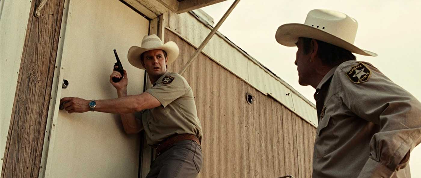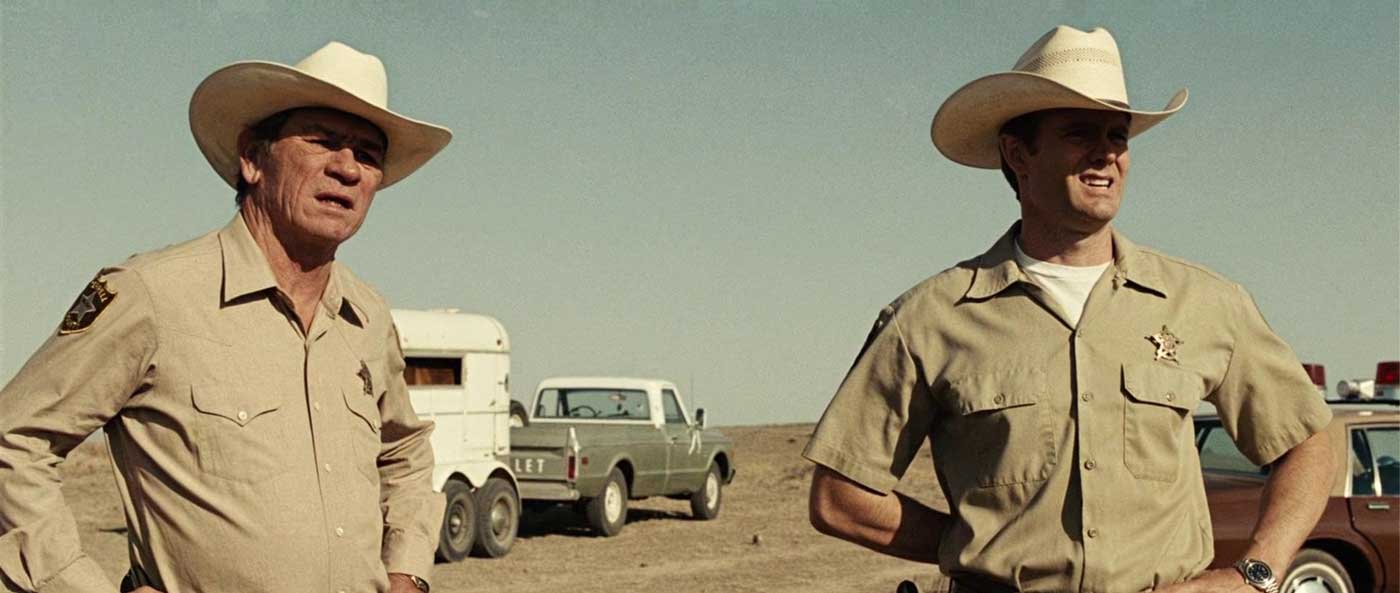 Landschaftsmontage des anbrechenden Tages in Texas. Roger Deakins’ Kamera fängt die poetische Ödnis der amerikanischen Steppe ein. Real America. Die kauende Stimme von Tommy Lee Jones, jene perfekt verkörperte Instanz des alten Rechts in dieser Geschichte, erzählt von früher. Sein Monolog, kombiniert und gestrafft aus mehreren Kapiteln der Buchvorlage, wirkt zusammen mit dem sanften Steppenwind als idealer Soundtrack zur ikonischen, zeitlosen Landschaft. Alles trägt bereits Geschichte in sich. Der echte Westen – oder was davon übriggeblieben ist. In seinem Off-Monolog erzählt Sheriff Ed Tom Bell (Jones) von den Herausforderungen der Begegnungen mit einer neuen Form des Verbrechens. Wie teuflische Geister erscheinen sie ihm, ungreifbar. Das sei seine größte Angst: nicht einfach zu sterben, sondern am Ende des Weges etwas zu begegnen, das er nicht versteht.