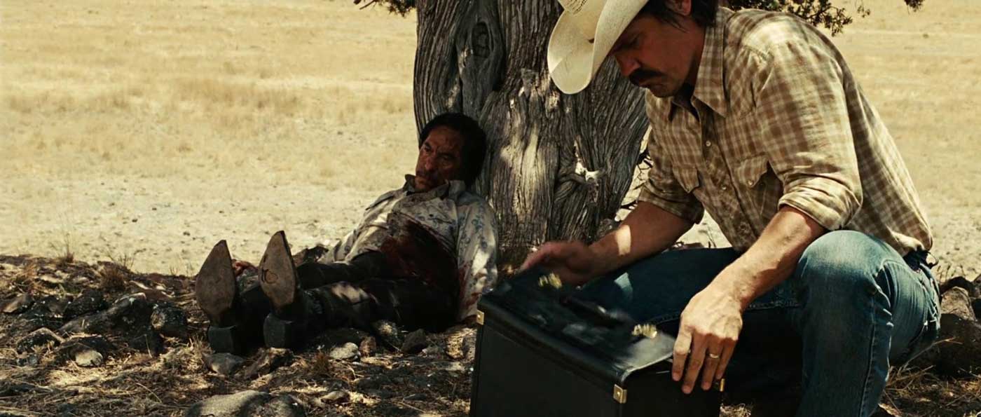 Bereits zu Beginn der Geschichte schwingt also unverkennbar mit, dass die alten Regeln, die traditionelle Werteordnung, in die Brüche geraten sind. Folglich tritt Sheriff Bell selbst erst nach einer halben Stunde aktiv auf den Plan. Ein missglückter Drogenumschlag und dessen blutige Folgen setzen zwei Handlungsstränge frei, die von zwei eher losen Figuren dominiert werden. Der Psychokiller Chigurh (Javier Bardem) und der gewöhnliche Arbeiter Llewelyn Moss (Josh Broslin) bewegen sich in zwei Schleifen um und auf einen Koffer voll Drogengeld zu. Blutgeld hat seinen Preis. Und beide werden ihn am eigenen Leib spüren.