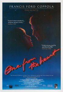 Wer gern ins Theater und Musical geht, aber sein Zuhause nicht verlassen will, hat eine Vielzahl von Filmen, die das Flair der großen Bühne nach Hause bringen zur Auswahl: zum Beispiel MOULIN ROUGE!, SINGIN‘ IN THE RAIN oder AN AMERICAN IN PARIS. Jetzt wollen wir jedoch einen Film in diese Liste aufnehmen, der gar nicht so bekannt ist, aber umso mehr überrascht mit seiner fabelhaften Umsetzung, seinen großartigen Darstellern und seinem herausragenden Soundtrack: ONE FROM THE HEART von Francis Ford Coppola. Vielleicht liegt es an der Liebe zum damalige Szenenbild, der filigranen Kameraführung und der geschickten Montage, dass einem der melodische Liebesfilm geradezu ans Herz wächst. Umso überraschender sind die damaligen Pressemeinungen. Hab sie denselben Film gesehen oder traf ONE FROM THE HEART nicht den damaligen Zeitgeist der 1980er Jahre? Denn der Film ist weder ein „Vampir“ der „seinen Figuren alle Lebendigkeit“ entzieht (DIE ZEIT, 1993), noch hat „er keinen Rhythmus.“ (Roger Ebert).