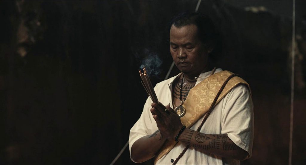 In der ersten Hälfte von Banjong Pisanthanakuns Film bekommt der Betrachter eine Einführung in das Leben dieser Menschen und ihrer umfangreichen Glaubenswelt. Eingefangen in großartigen Bildern zelebriert Pisanthanakun regelrecht dieses für uns so unglaubliche wie unvorstellbare in sich geschlossene Biotop. Dabei lauschen wir gebannt immer wieder den Worten der Schamanin Nim sowie einigen weiteren Personen aus dem kleinen Dorf in der Isan-Region. Nim ist vom Geist ihres Gottes Bayan besessen, der sie zur Schamanin machte. Diese verantwortungsvolle Position ist schon Tradition in ihrer Familie, denn vor Nim waren sowohl ihre Mutter wie auch ihre Großmutter ebenfalls Schamanen.
