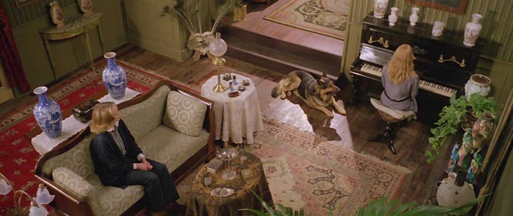 Immer wieder wird Bezug auf ein mysteriöses Buch Eibon genommen: Literarisch von Clark Ashton Smith im Hyperboreanischen Zyklus aufgegriffen, integrierte Lovecraft mit der Zustimmung Smiths das fiktive Werk mehrmals in eigene Erzählungen wie „Träume im Hexenhaus“ oder „Das Ding auf der Schwelle“. Mit der Szene, in der Emily von ihrem Blindenhund getötet wird, zitiert Fulci deutlich aus SUSPIRIA (1977) von Dario Argento: aber nicht nur an den grausamen Tod des blinden Pianisten auf dem Münchener Königsplatz erinnert die Sequenz, sondern auch an Lovecrafts frühe Kurzgeschichte „Der Hund“, indem er auch erstmals das geheimnisvolle Buch Necronomicon erwähnt, auf welches auch im „Der Fall Charles Dexter Ward“ Bezug genommen wird. In dem kurzen Roman wird geschildert, wie der Hexenmeister Curwen zur Zeit der Salemer Hexenprozesse auch bedingt durch Intrigen der politischen Elite grausam zu Tode kommt. Ist Curwen bei Lovecraft ein erfolgreicher Kaufmann, wird dessen Entsprechung in Fulcis ÜBER DEM JENSEITS als Künstler präsentiert, dessen schreckliches Ende wie ein Kunstwerk zelebriert wird: „an die Wand geschlagen“ wird er wie Hans Schifferle schreibt, ein „lebendes Gemälde“. Die Ambivalenz der Vorlage, die Curwen als verleumdeten und verfolgten Außenseiter darstellt und dadurch als nicht ausschließlich negative Figur beschreibt, bleibt bei Fulci mehr als bei Corman erhalten. Die Darstellung verweist auf eine weitere Erzählung Lovecrafts, Pickmans Modell. Hierin geht es um Abbildungen von höllischen Monstern, ein Element, welches Fulci mit seinen mechanisch wirkenden Zombies aufnimmt. Beeinflusst wurden diese Szenen auch durch George A. Romeros „Living-Dead“-Filme und Romero selbst sollte 1993 in STEPHEN KINGS STARK – THE DARK HALF einzelne Elemente aus Lovecrafts Grauen von Dunwich aufnehmen.