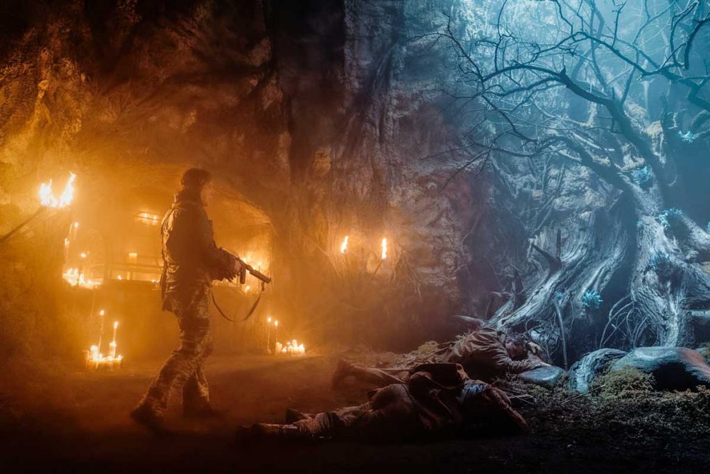 Der Score des erfahrenen chinesischen Komponisten Tao Liu begleitet unsere kleine Gruppe auf ihrer stürmischen Reise. Er dröhnt zwischen finsteren Wäldern und schwerem MG-Salven „Dramatisch-spektakulär-mysteriös“ aus den Boxen, wie es sich für eine Produktion mit heroischen US-Soldaten im Kampf gegen dunkle Mächte eben gehört.